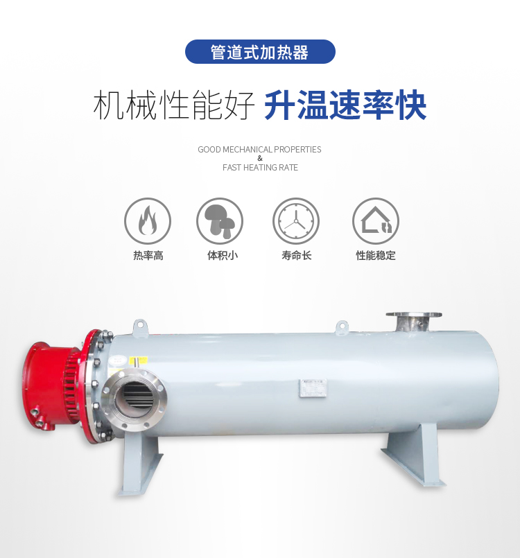 3、管道加熱器采用法蘭式電加管加熱,并配有專業(yè)設(shè)計(jì)導(dǎo)流板,保證電熱管發(fā)熱均勻及加熱介質(zhì)充分吸收熱量。